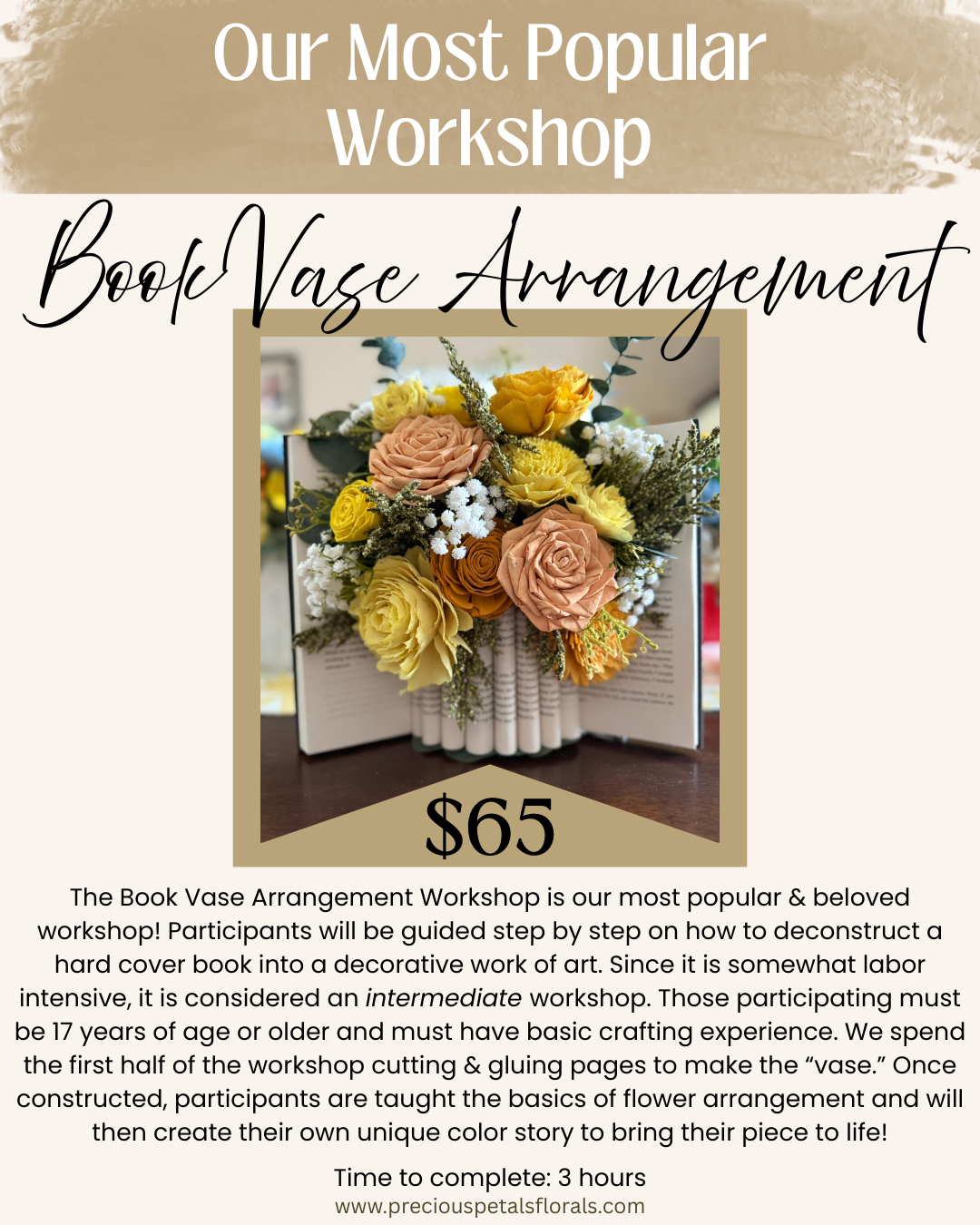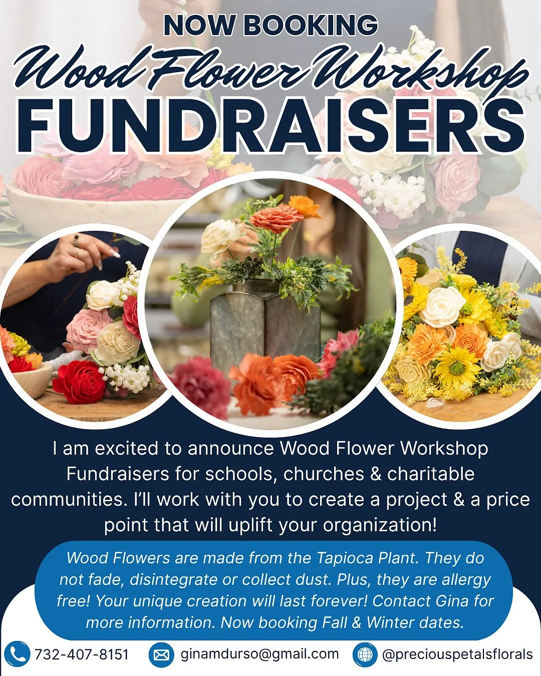 Our customized Wood Flower Workshops - suited for any level of crafting experience!